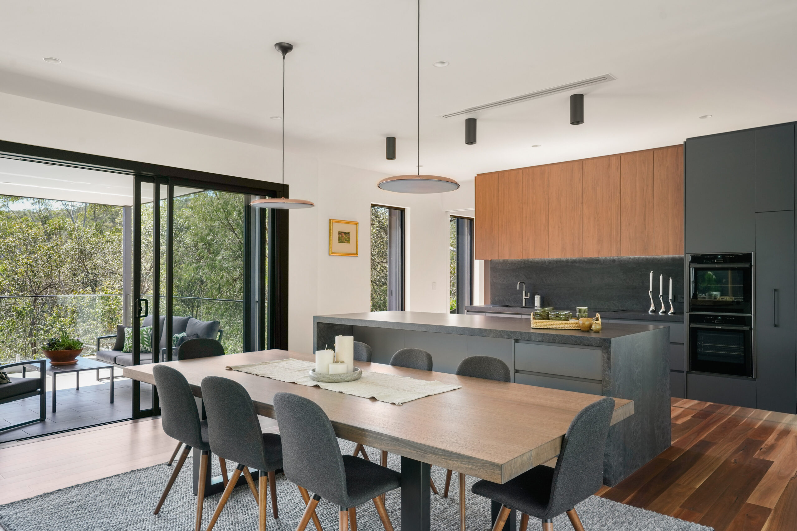 Trahlee redefines suburban living with its elegant, contemporary design, set amongst the tall gums and backing onto the serene national park reserve in Wahroonga. This home features a seamless integration of modern functionality and classic style. Our approach to Trahlee emphasises both luxury and practicality, ensuring that every space is not only beautiful but also perfectly suited to the needs of its inhabitants.